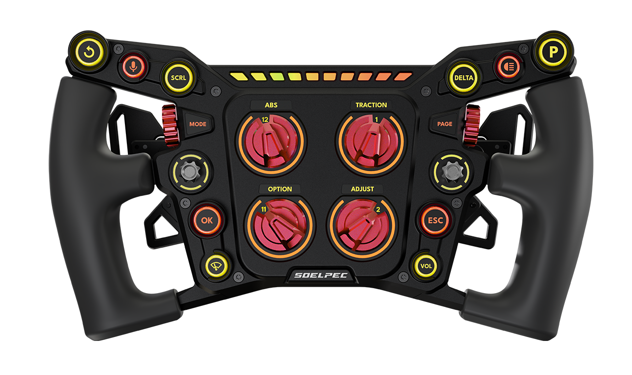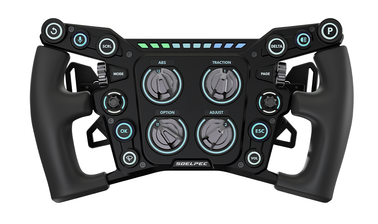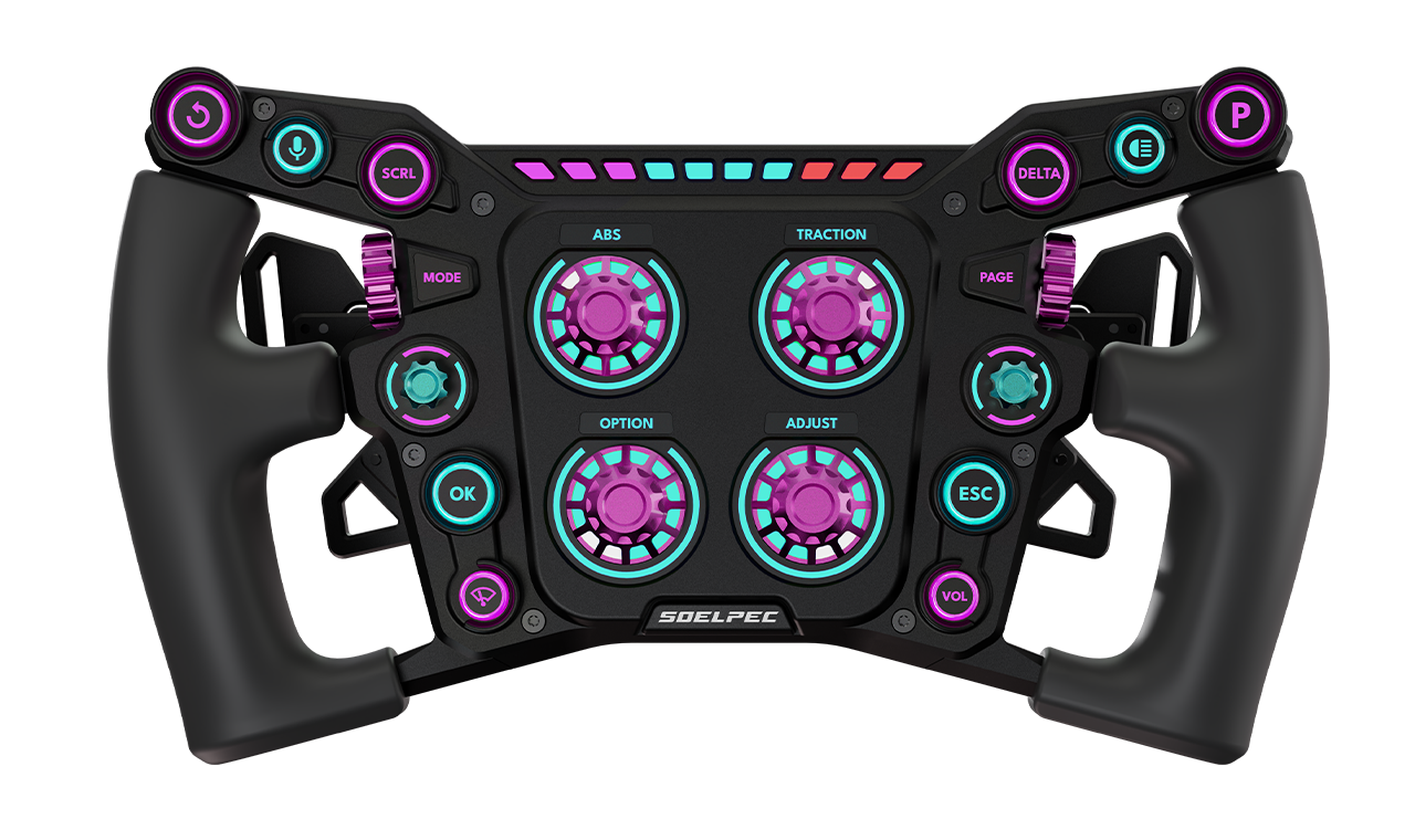 A signature feature of Soelpec products, the Dedicated Settings Button lets you quickly adjust wheel functions on the go. Access color themes, LED profiles, bite point, clutch modes, encoder settings, calibration and more instantly.